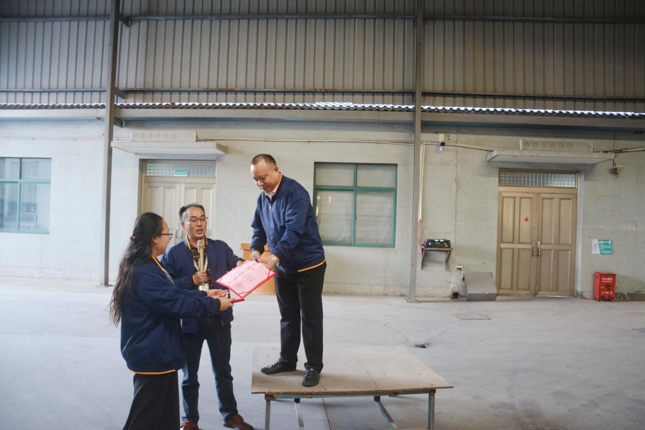 2022年10月24日,趁著周一早會時間,我們對模具部及五金模組頒發(fā)了獎狀及獎金,激勵各位佳人以模具部為榜樣,在自己精通熟悉的領(lǐng)域里,主動挑起重擔,精進技藝,簡化流程,節(jié)約公司成本,開創(chuàng)屬于我們自己自創(chuàng)自主的品牌產(chǎn)品。只要有利公司發(fā)展前景,公司一定給予相應(yīng)嘉獎。